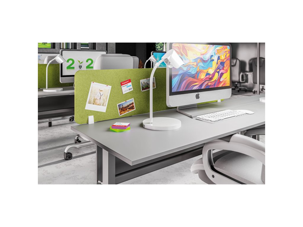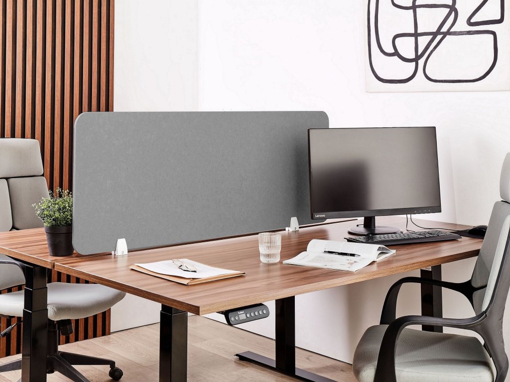 - akustický paraván na stoly s textilním povrchem pro optické i akustické oddělení prostorů v kancelářích