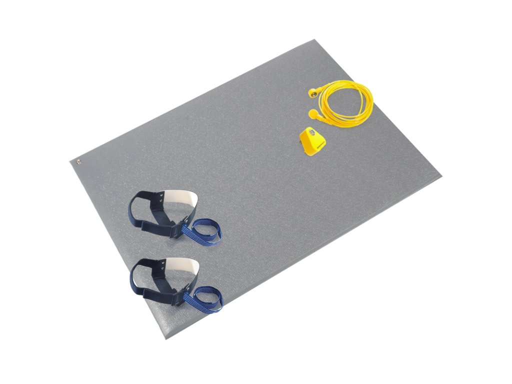 Antistatická ESD průmyslová rohož včetně uzemňovací sady, protiúnavová, 0,6 x 0,9 m