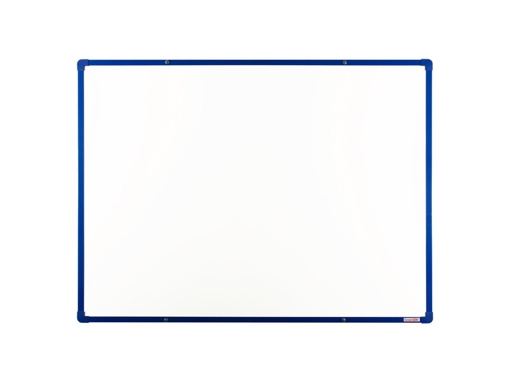 Bílá magnetická popisovací tabule s keramickým povrchem boardOK, 1200 x 900 mm, modrý rám