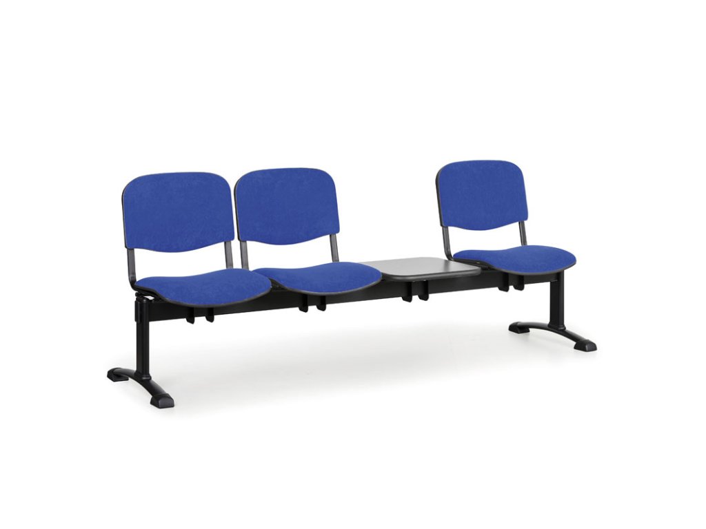 Čalouněná lavice do čekáren VIVA, 3-sedák, se stolkem, modrá, černé nohy