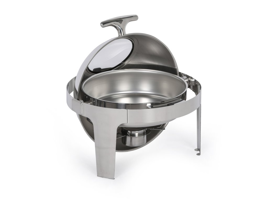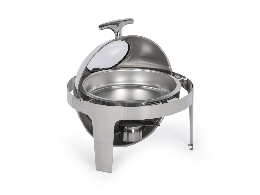 Kulatý chafing se zasouvacím roll top víkem slouží k podávání teplého jídla a udržování pokrmů při požadované teplotě. Chafing můžete využít jak při rautech uvnitř budovy, nebo třeba také pro catering na zahradní párty, oslavách a dalších událostech. Tento model je vyroben z vysoce kvalitního nerezového kovu, který zaručuje nejen dlouhou životnost, ale především reprezentativní a profesionální vzhled, ať už jídlo budete servírovat kdekoli.