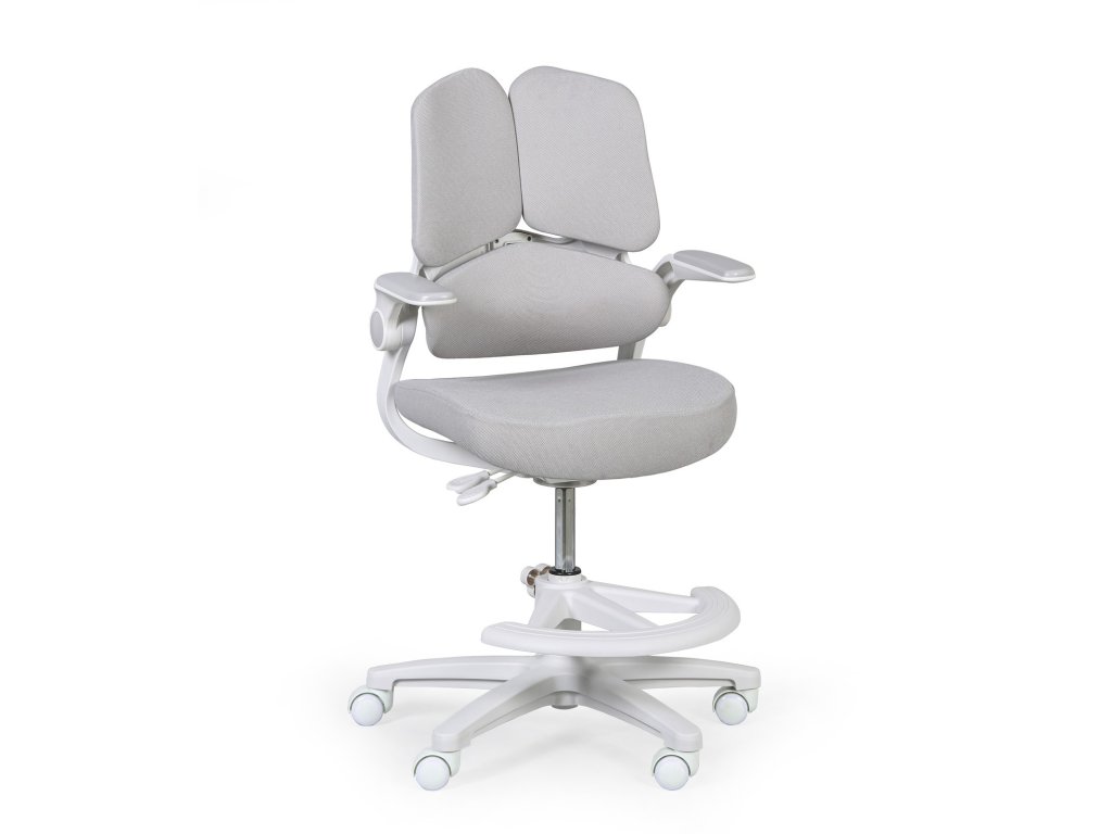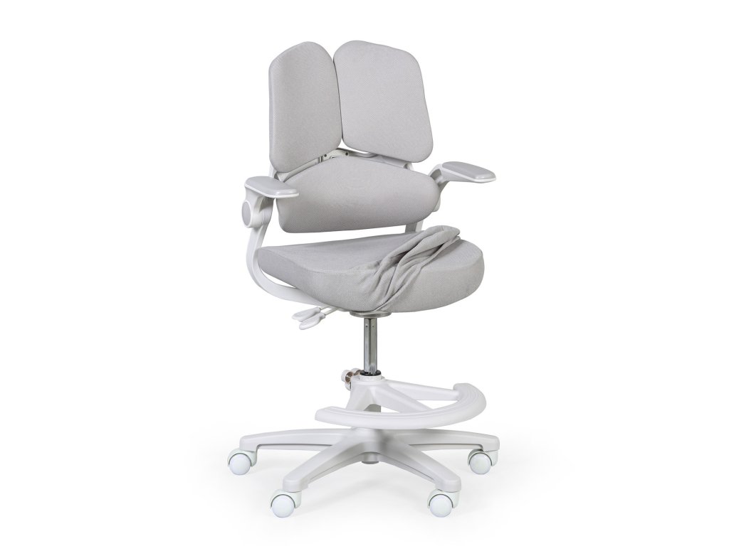 Tato dětská židle je vybavena integrovanou opěrou pro nohy. Tu lze dle potřeby výškově nastavit v rozmezí 16–24 cm, případně jí můžete zcela odejmout. Celková šířka opěry nohou činí 45 cm a hloubka dosedací plochy podnožky je 6 cm.