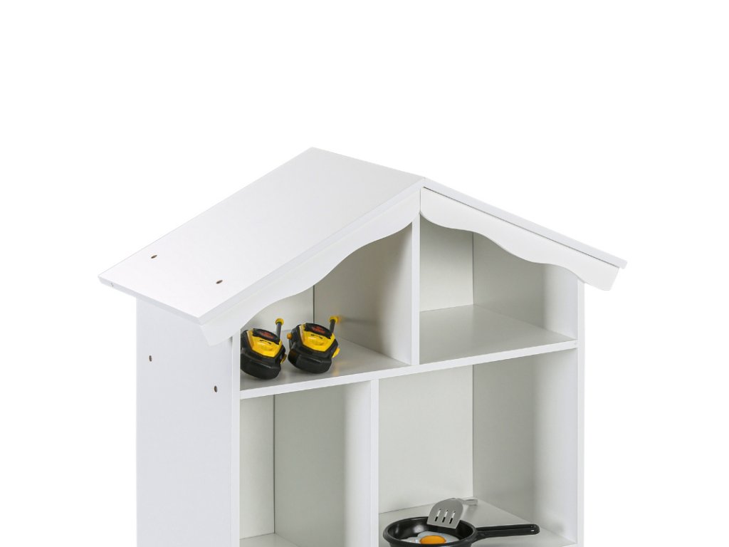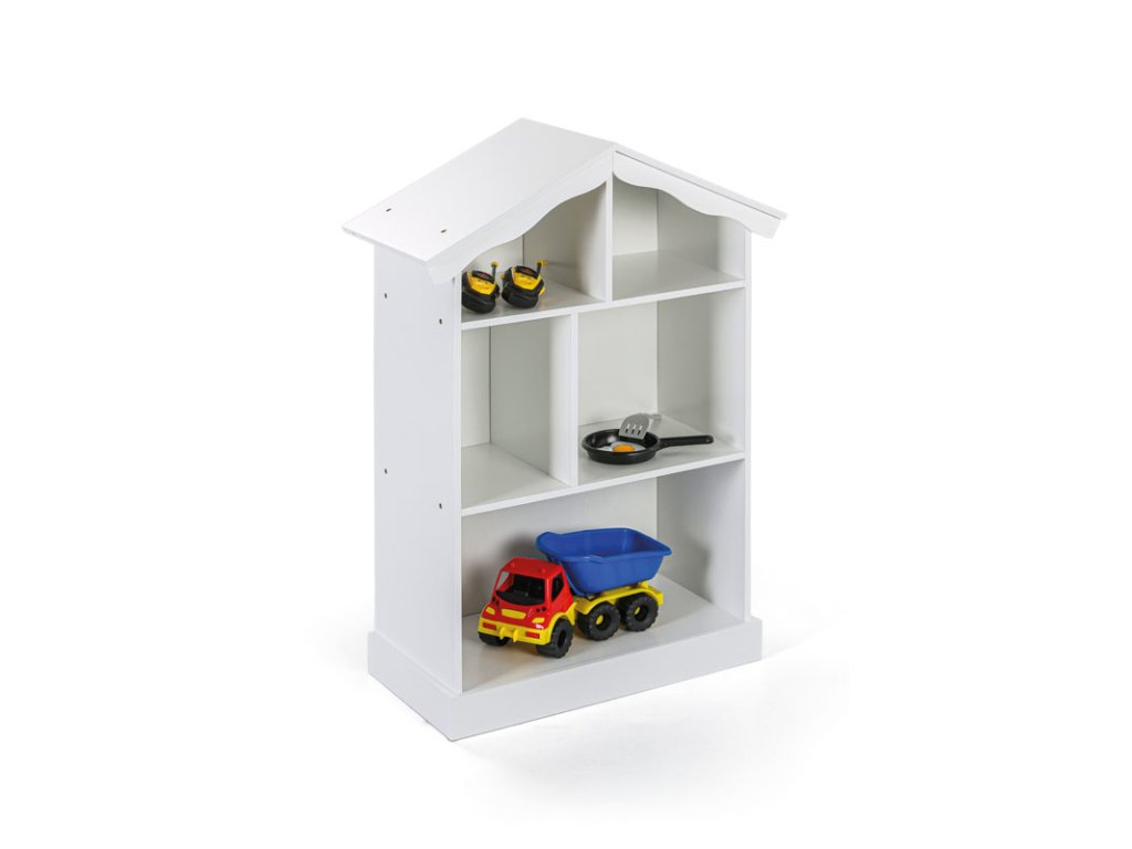 Tento originální dětský policový regál zaujme vaše děti na první pohled. Je totiž vyroben v designu, který připomíná domeček pro panenky. Pod „střechou“ pak najdete celkem pět polic, které nabízí velkorysý odkládací prostor pro všechny dětské poklady. Bez problémů se zde vejdou hračky všeho druhu, ať už jde o plyšáka, nebo třeba krabici se stavebnicí.