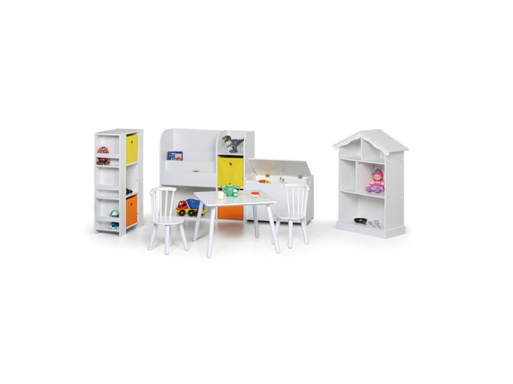 Sety stolů s židlemi jsou vhodné pro děti od 3 let. U regálů a knihoven doporučujeme použít ochranu proti převrácení.