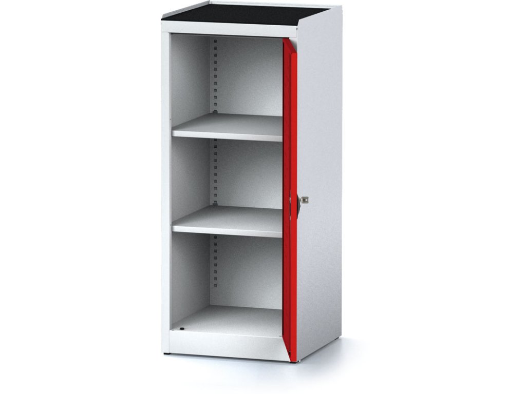Úzká policová dílenská skříň MECHANIC, 2 police, 490 x 500 x 1170 mm, červené dveře