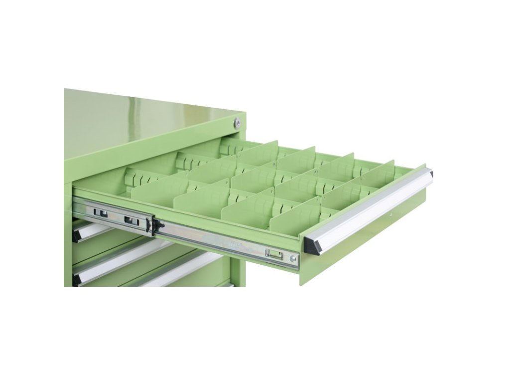 - každá zásuvka vybavena kovovými děliči pro rozložení úložného prostoru