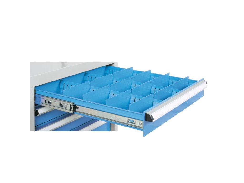 - každá zásuvka vybavena kovovými děliči pro rozložení úložného prostoru