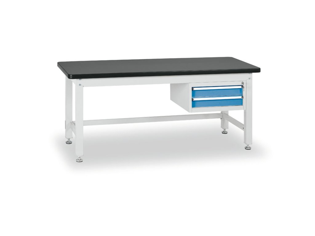Profesionální dílenský stůl BL, 2 zásuvky, deska MDF + PVC, 2100x750 mm
