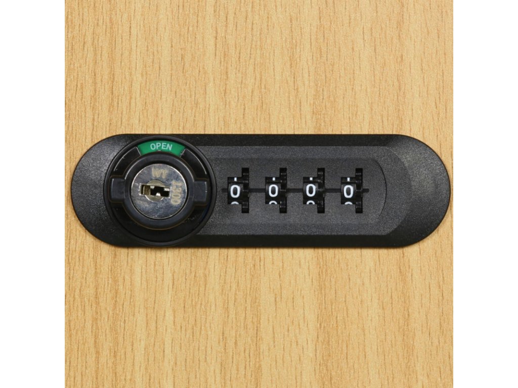 - mechanický kódový zámek – číselný kód, bez klíče a baterie