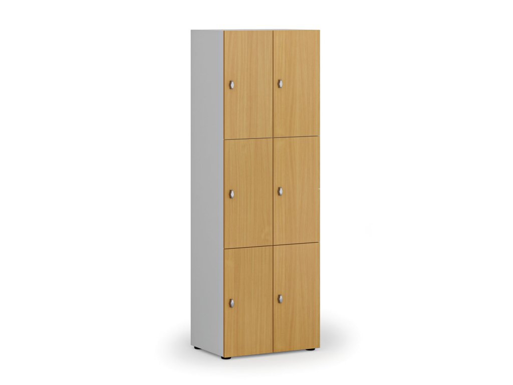 Skříňku s šířkou 300 mm tvoří 6 uzamykatelných boxů. Každý box poskytuje dostatek místa pro uložení osobních věcí, batohů či tašek. Toto úsporné a přitom bezpečné, uzamykatelné řešení je ideální všude tam, kde je potřeba šetřit místem a zároveň není nutné zavěšovat delší oděvy.