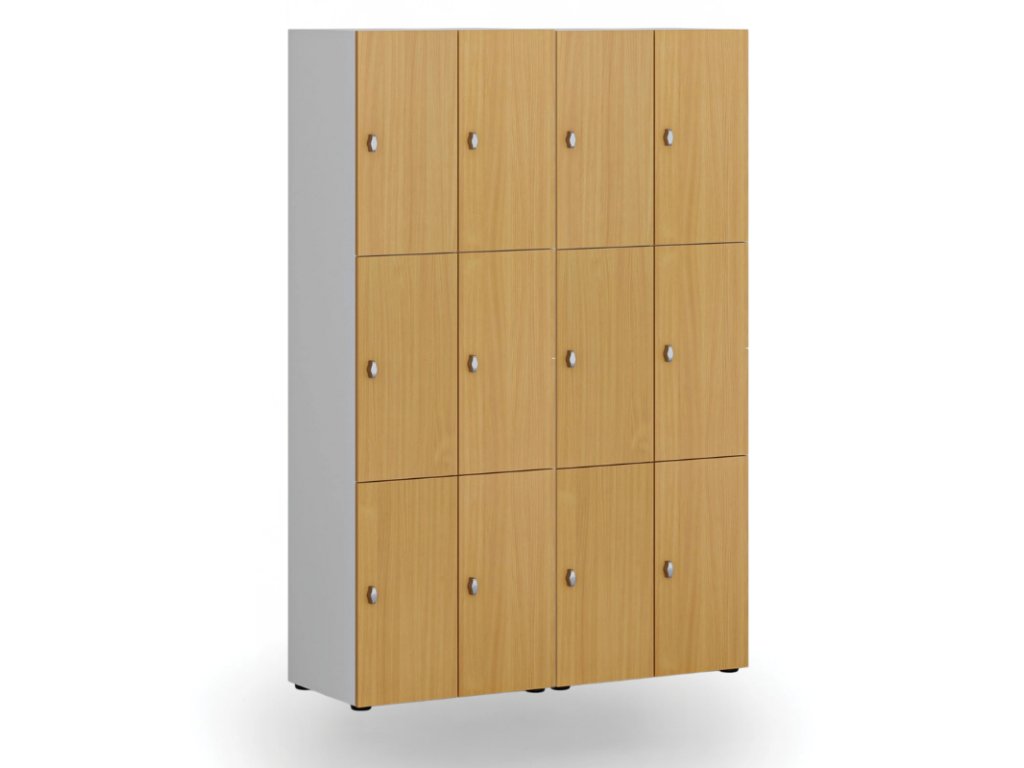 Skříňku s šířkou 300 mm tvoří 6 uzamykatelných boxů. Každý box poskytuje dostatek místa pro uložení osobních věcí, batohů či tašek. Toto úsporné a přitom bezpečné, uzamykatelné řešení je ideální všude tam, kde je potřeba šetřit místem a zároveň není nutné zavěšovat delší oděvy.