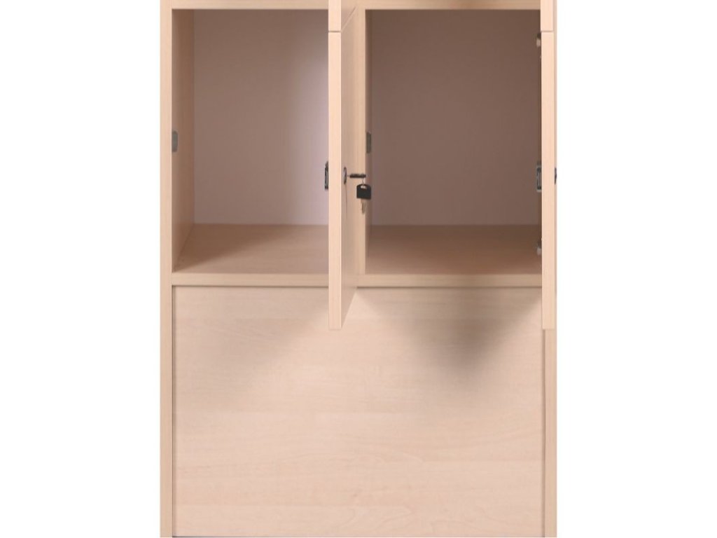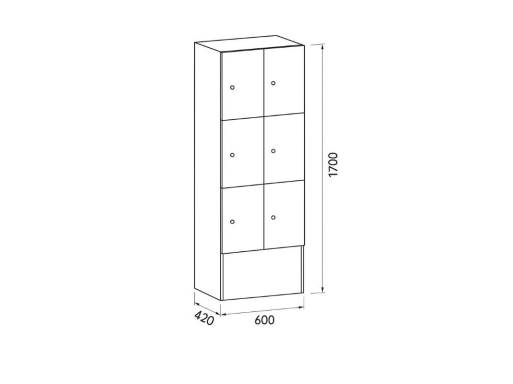 Skříňku s šířkou 300 mm tvoří 6 uzamykatelných boxů. Každý box poskytuje dostatek místa pro uložení osobních věcí, batohů či tašek. Toto úsporné a přitom bezpečné, uzamykatelné řešení je ideální všude tam, kde je potřeba šetřit místem a zároveň není nutné zavěšovat delší oděvy.