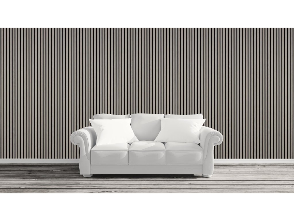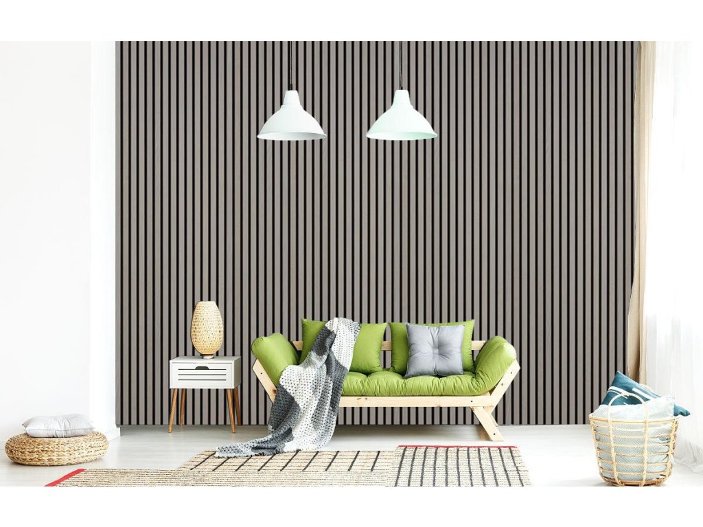 Dřevěný akustický panel, 2400 x 600 mm, černý podklad, dub grafitový