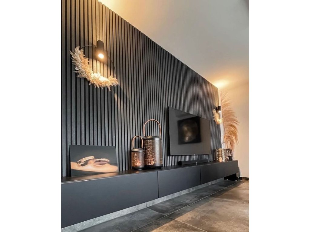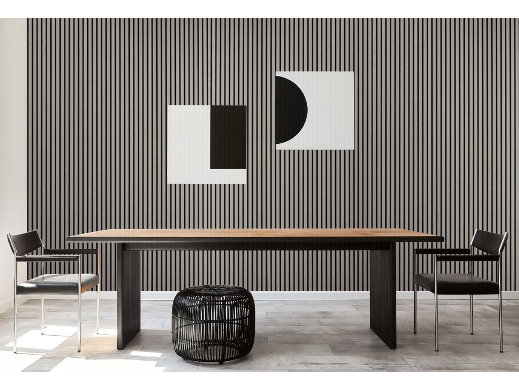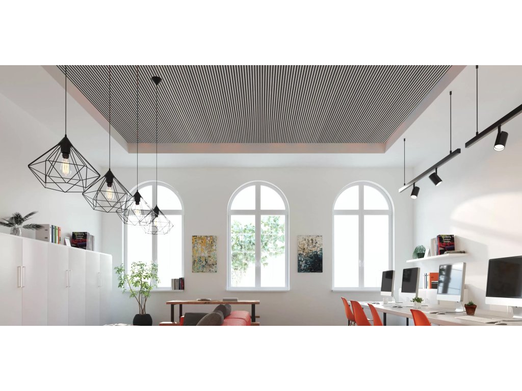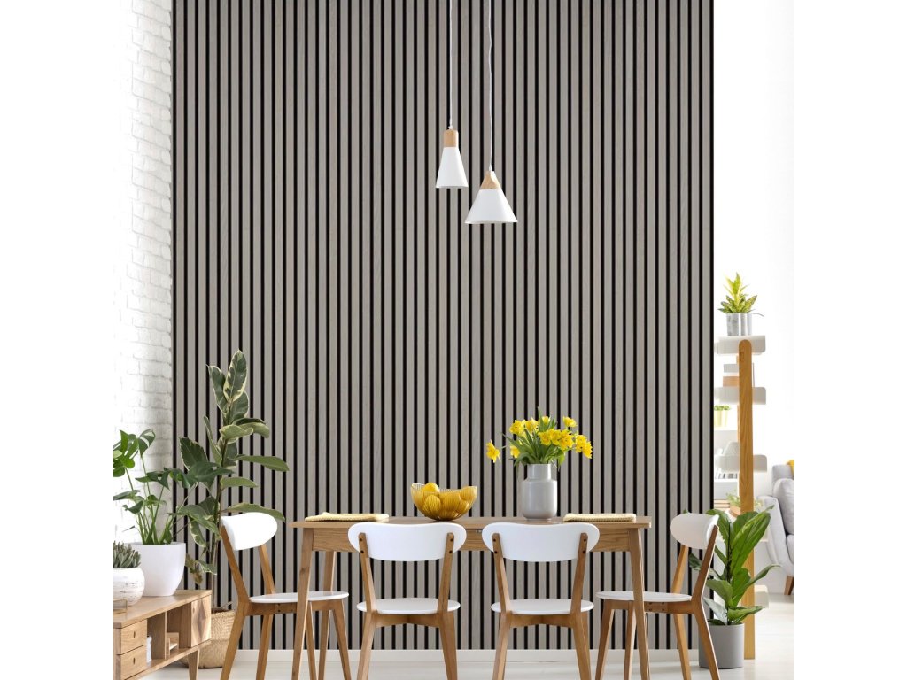 Aby akustické panely skvěle zapadly do moderních interiérů, ve kterých je kladen důraz na design a estetiku, je 9 mm hrubý polyesterový panel obložen 27 mm širokými a 12 mm hrubými MDF lamelami a rozestup mezi nimi činí 13 mm.