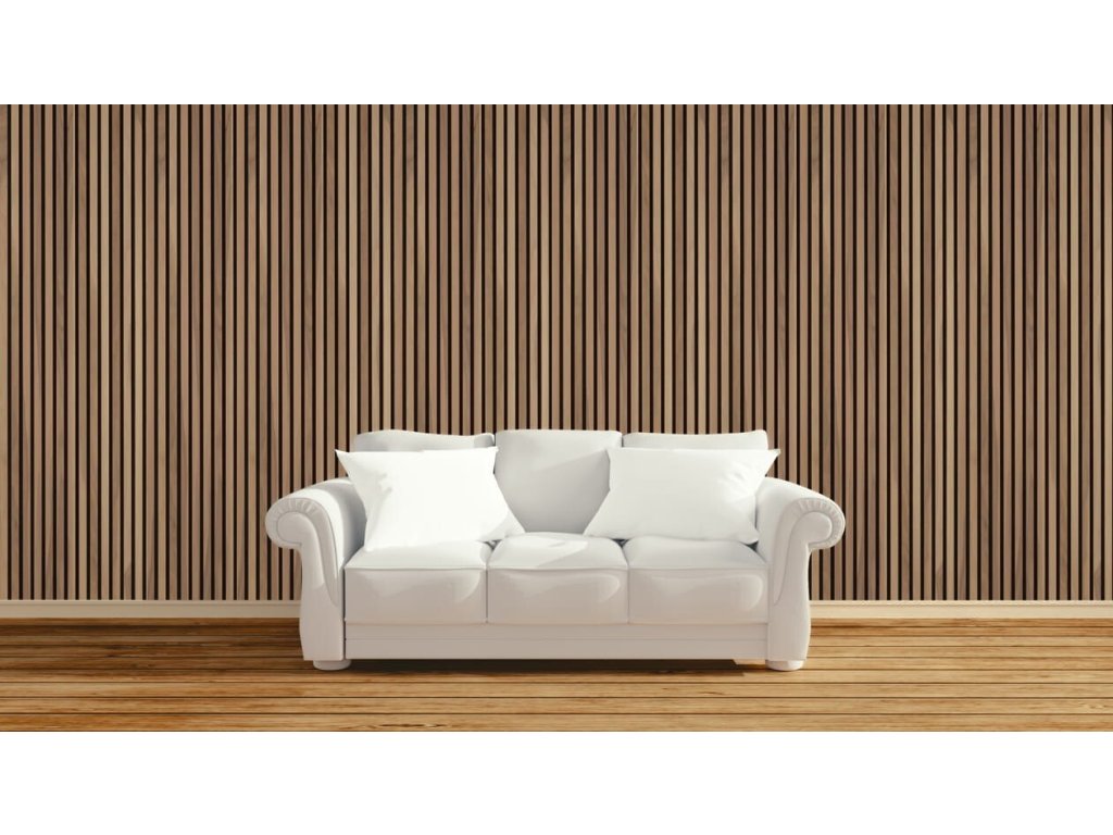 Dřevěný akustický panel, 2400 x 600 mm, černý podklad, ořech