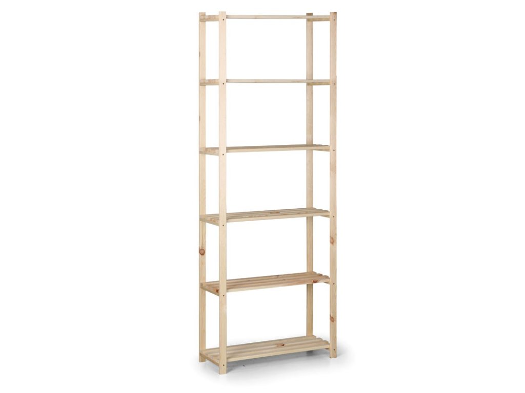 - dřevěné laťkové regály vhodné do domácností, interiérů, kanceláří nebo do komor či suchých sklepů, technických místností