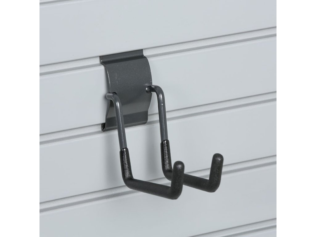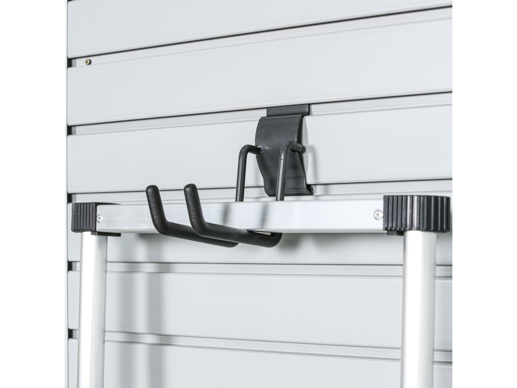 Tento dvojitý hák pro závěsné systémy Storia má díky svému specifickému tvarování po vzoru dvou písmen „J“ velice široké využití. Pomocí něj uchytíte v podstatě cokoli – ať už jde o sportovní vybavení, zahradní náčiní, nářadí, oblečení, nebo třeba dětské hračky. Díky částečně pogumovanému povrchu se nemusíte bát poškození či nežádoucího poškrábání skladovaného předmětu.