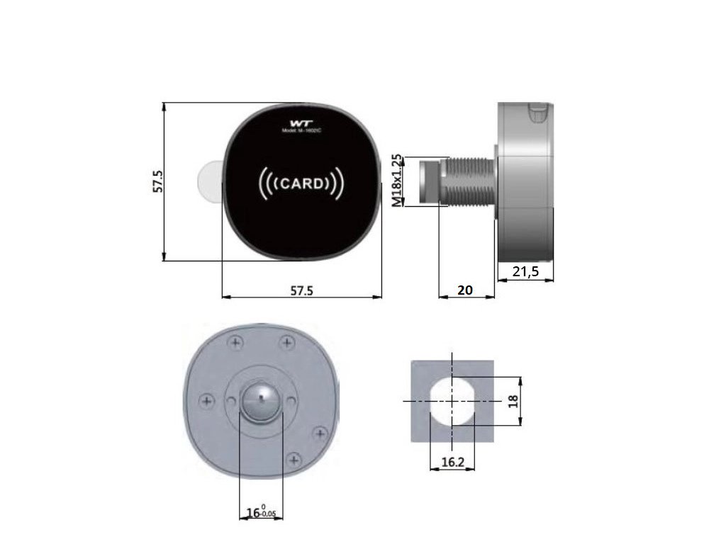 Elektronický RFID zámek, závit M18, délka 20 mm