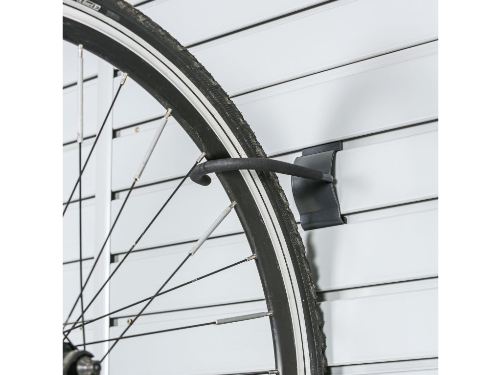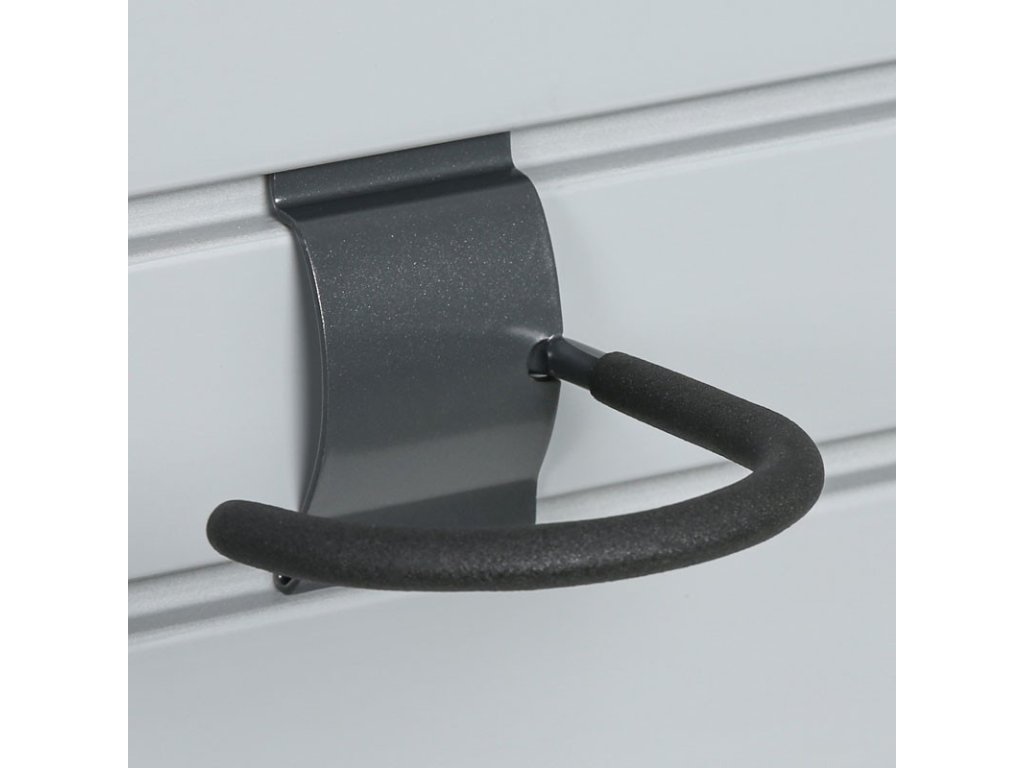 Tento hák na jízdní kolo pro závěsné systémy Storia je díky svému praktickému tvaru určen pro upevnění jízdních kol, případně koloběžek s velkými koly. Stačí jen jednoduše zaháknout ráfek vašeho kola a je hotovo. Díky částečně pogumovanému povrchu se nemusíte bát poškození či nežádoucího poškrábání vašeho kola.