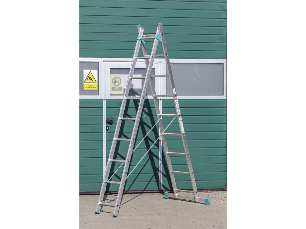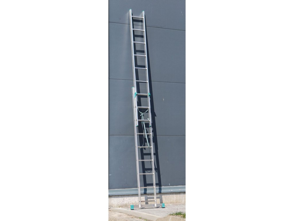 Hliníkový dvoudílný žebřík ALVE EUROSTYL s úpravou na schody, 2x9 příček, délka 4,28 m
