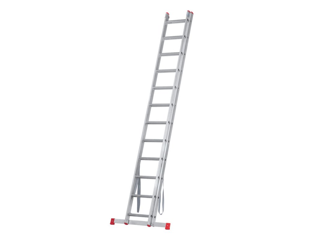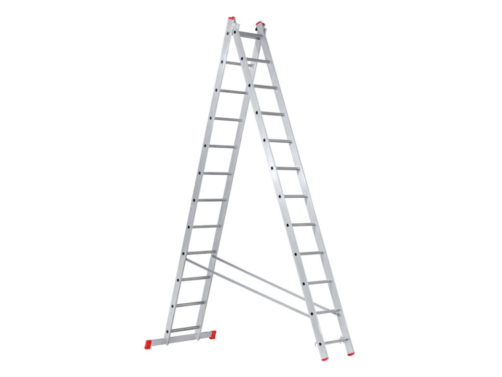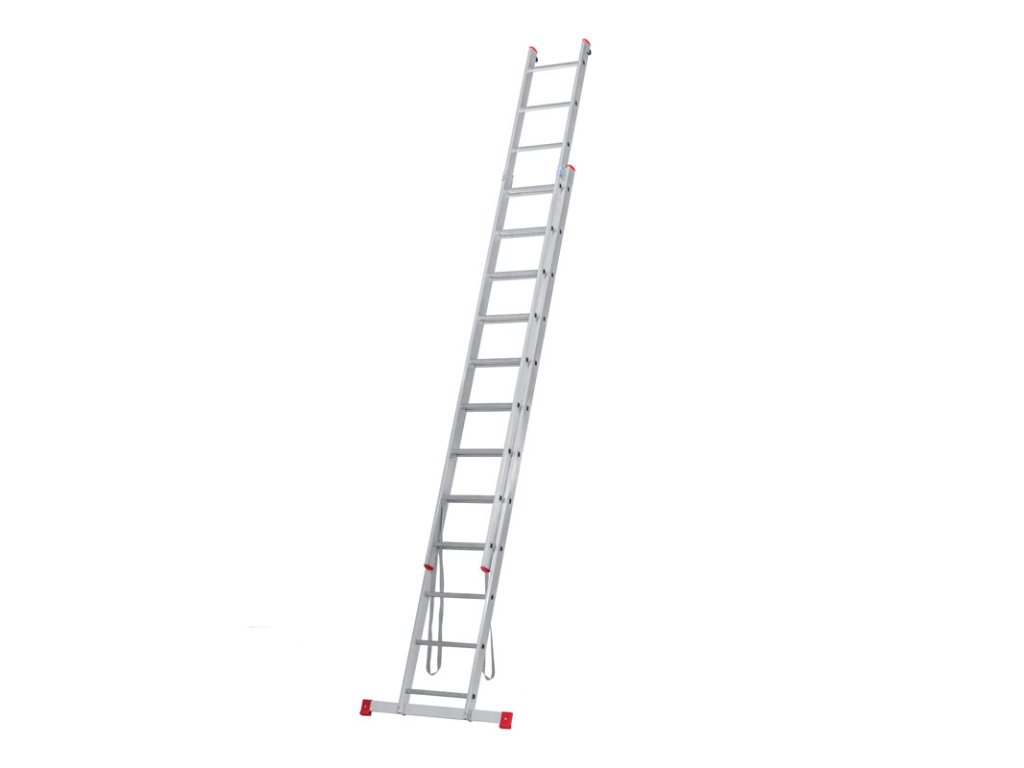 Dvoudílný žebřík je vyroben z kvalitního odlehčeného hliníku. Díky lisovanému spojení příček s bočnicemi je zajištěná vysoká tuhost a životnost žebříku. Bezpečnost pohybu po žebříku zvyšuje protiskluzové rýhování nášlapů. Bezpečnou stabilitu žebříku zajišťují kvalitní protiskluzové patky, které zároveň brání poškození povrchu, na němž je žebřík použit. Žebříky splňují evropskou normu EN131-2