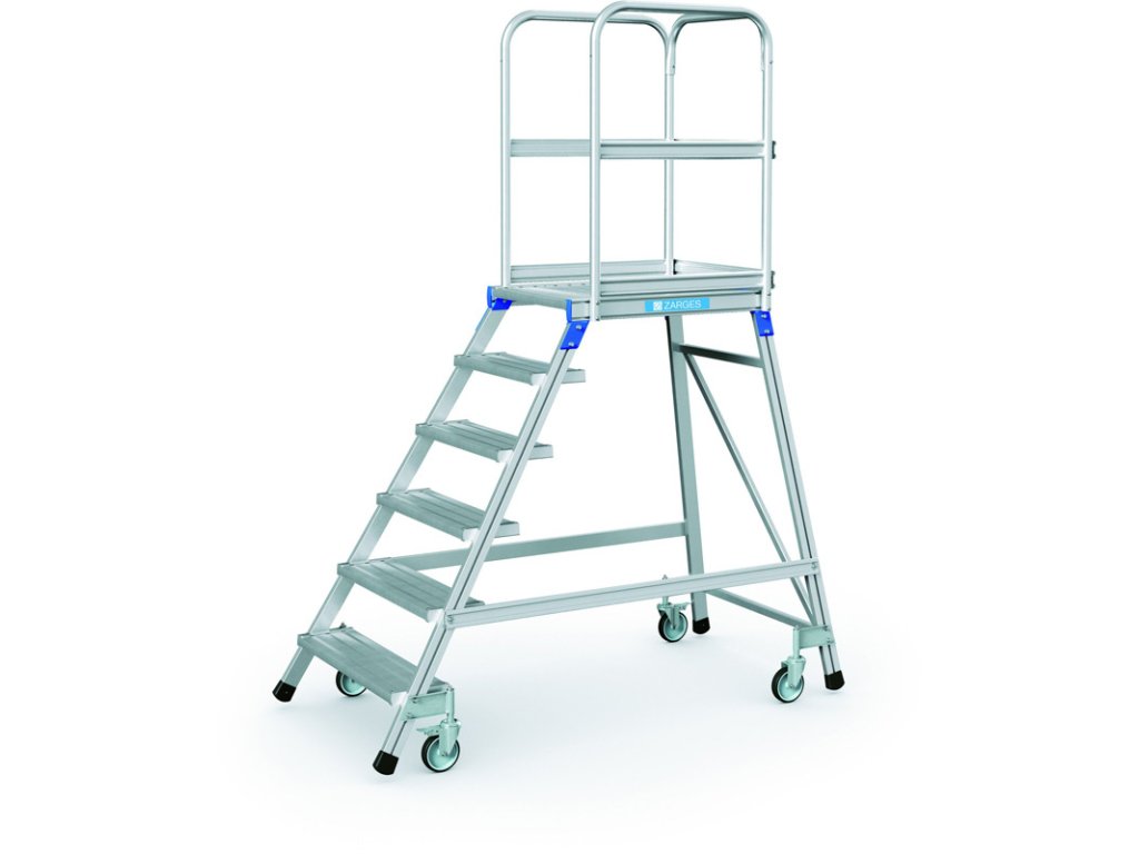 Hliníkový pojízdný žebřík s plošinou, 6 příček, výška plošiny 1,44 m