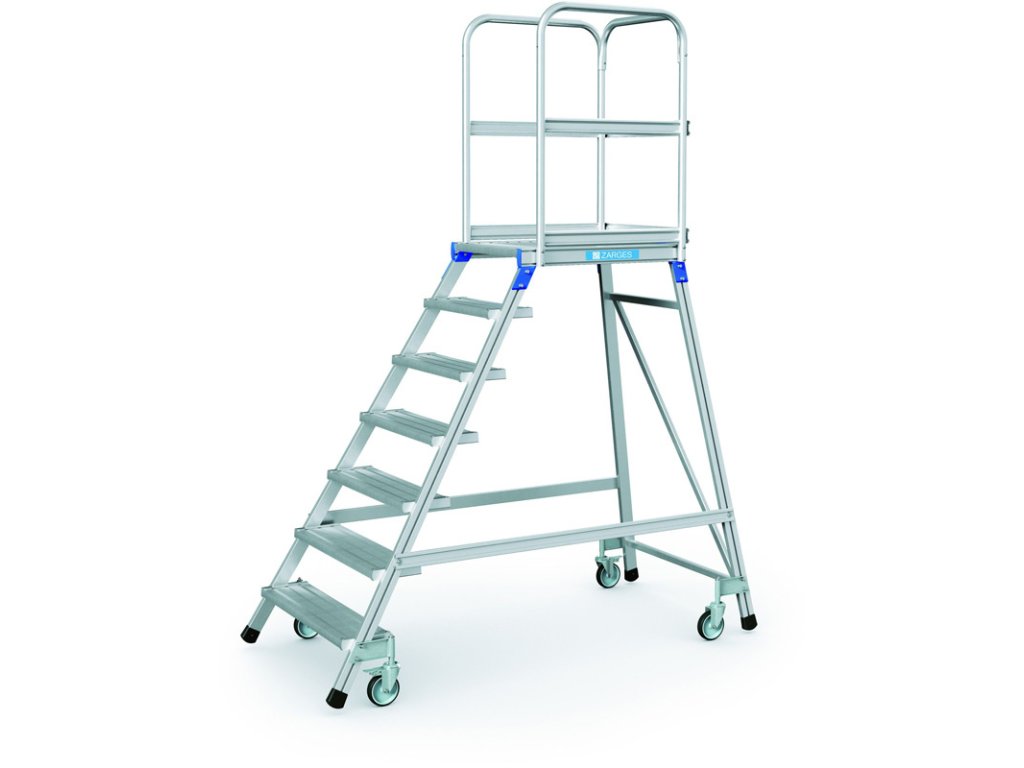 Hliníkový pojízdný žebřík s plošinou, 7 příček, výška plošiny 1,68 m