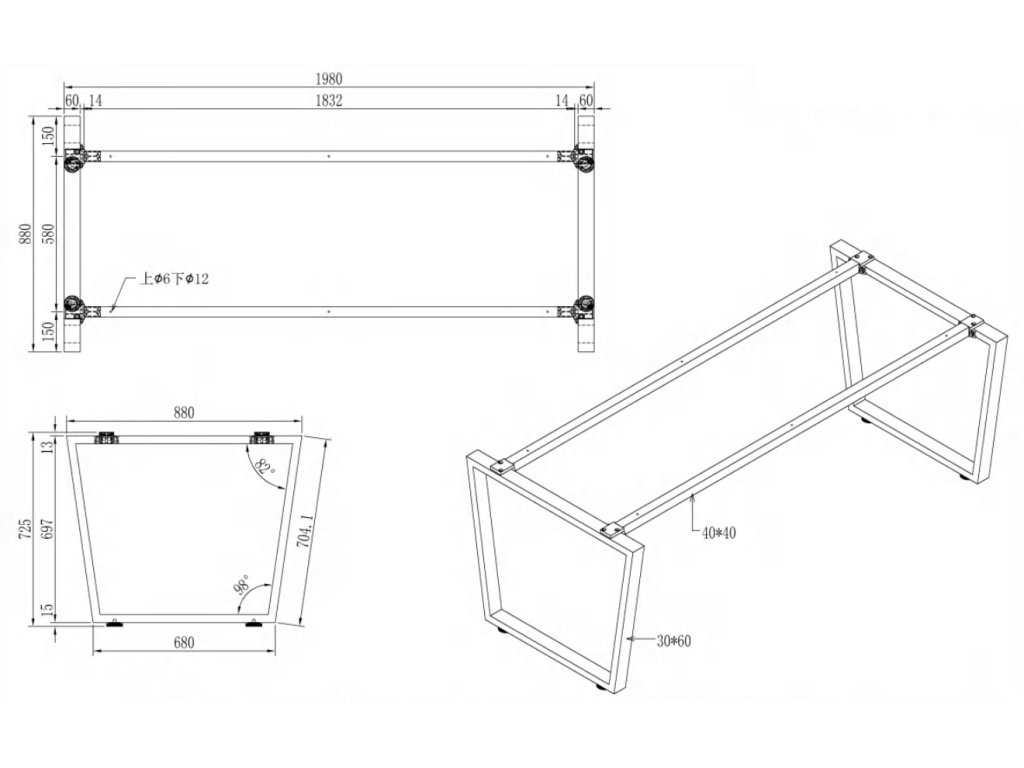 Rozměry š x h x v (mm) | 2000 x 900 x 750 |