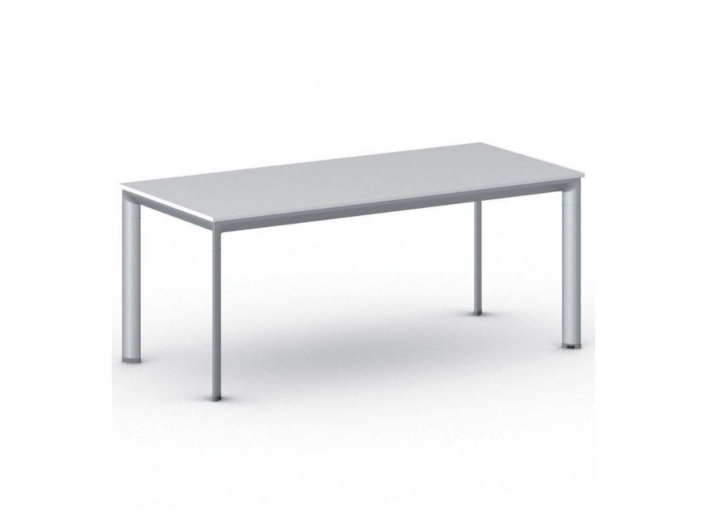 Jednací kancelářský stůl PRIMO INVITATION, 180x80 cm, šedostříbrná podnož, bílá