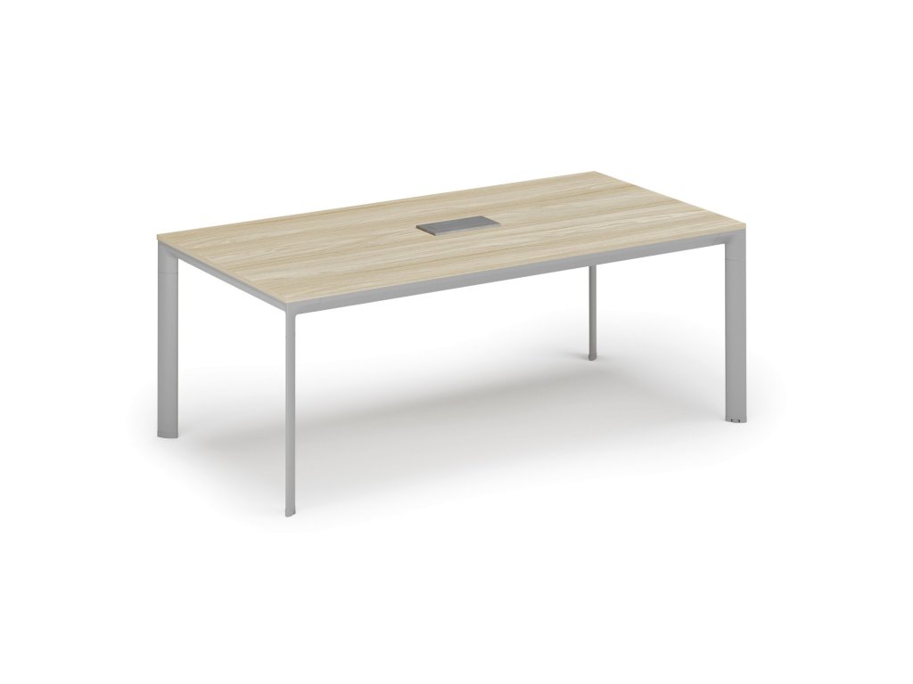 Jednací stůl PRIMO INVITATION, 200x100 cm, dub přírodní + stolní zásuvka TYP II, stříbrná