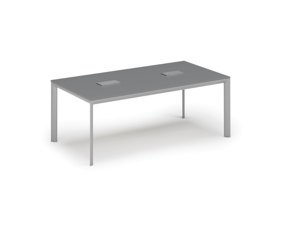Jednací stůl PRIMO INVITATION, 200x100 cm, grafit + 2x stolní zásuvka TYP VI, stříbrná