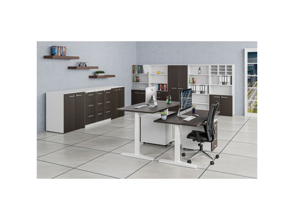 Kancelářská komoda ke stolu PRIMO WHITE, 740 x 600 x 420 mm, bílá/wenge