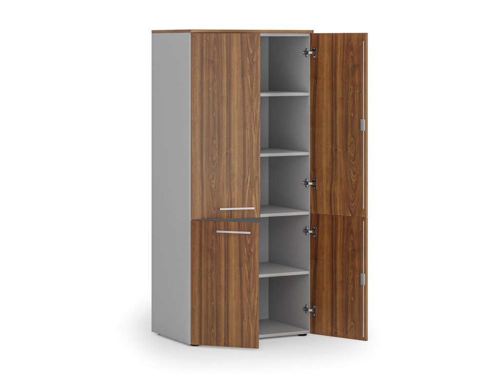 Kancelářská policová skříň PRIMO GRAY, půlené dveře, 800 x 500 x 1781 mm, šedá/ořech