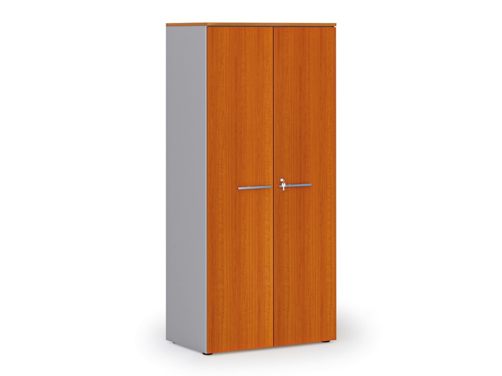 Kancelářská policová skříň PRIMO GRAY s dveřmi, 800 x 500 x 1781 mm, šedá/třešeň