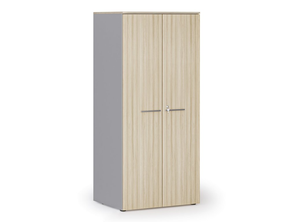 Kancelářská policová skříň PRIMO GRAY s dveřmi, 1781 x 800 x 600 mm, šedá/dub přírodní