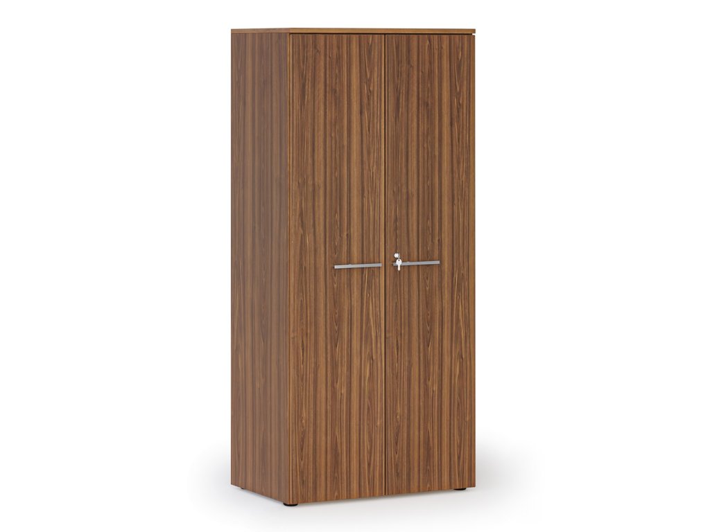 Kancelářská policová skříň PRIMO WOOD s dveřmi, 800 x 500 x 1781 mm, ořech