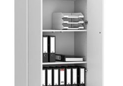 Kancelářská policová skříň s dveřmi LAYERS skvěle doplní vaše pracovní místo o potřebný úložný prostor, do něhož lehce schováte nejen všechny své dokumenty, ale i kancelářské potřeby či knížky. Stane se rovněž i estetickým doplňkem. Každý kontejner, komoda a skříňka obsahuje minimálně jednu polici a jsou také doplněny o ochranný prvek ve spodní části, který zabrání poškrábání či oděru podlahy při přemisťování.