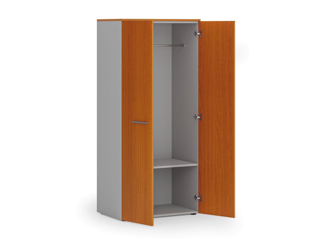 Kancelářská šatní skříň PRIMO GRAY, 1 police, šatní tyč, 800 x 500 x 1781 mm, šedá/třešeň