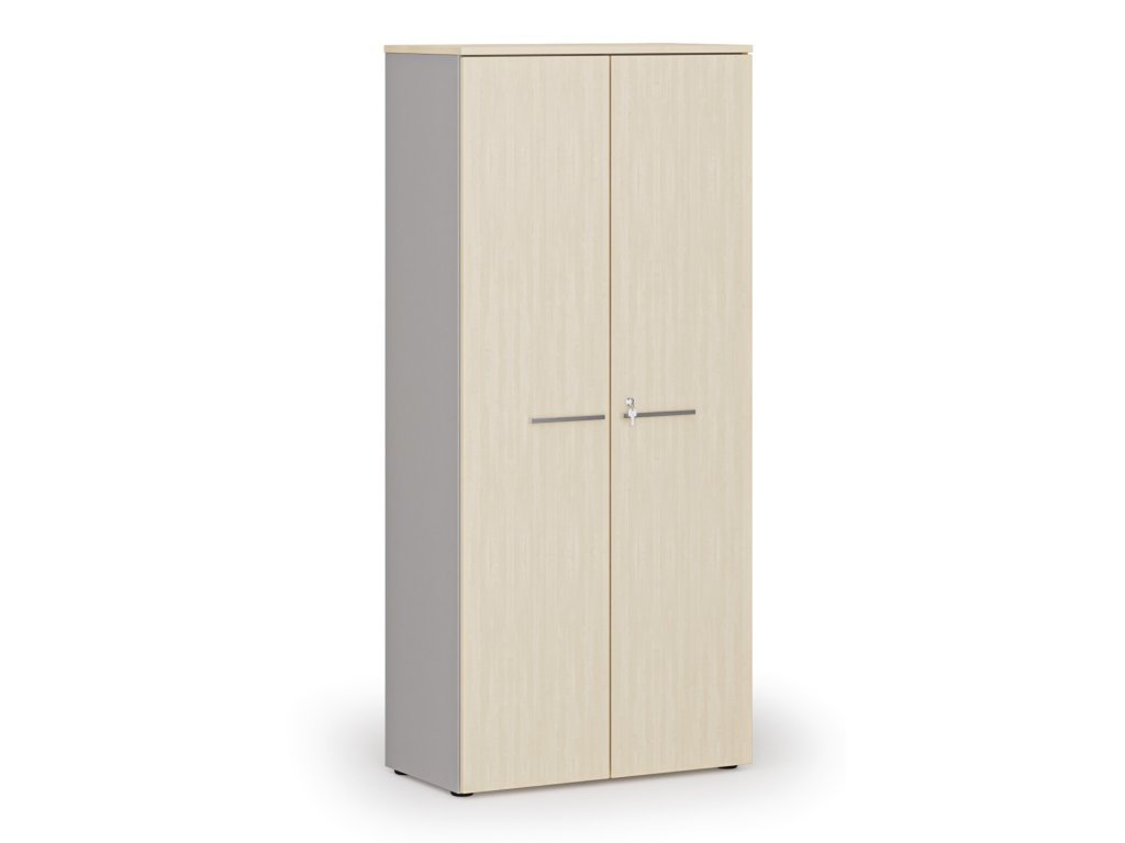 Kancelářská skříň s dveřmi PRIMO GRAY, 800 x 420 x 1781 mm, šedá/bříza