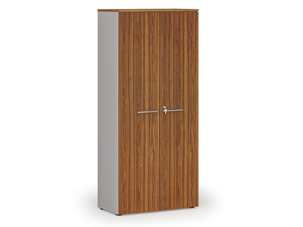 Kancelářská skříň s dveřmi PRIMO GRAY, 800 x 420 x 1781 mm, šedá/ořech
