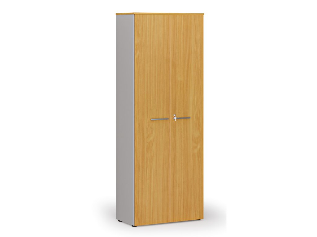 Kancelářská skříň s dveřmi PRIMO GRAY, 800 x 420 x 2128 mm, šedá/buk