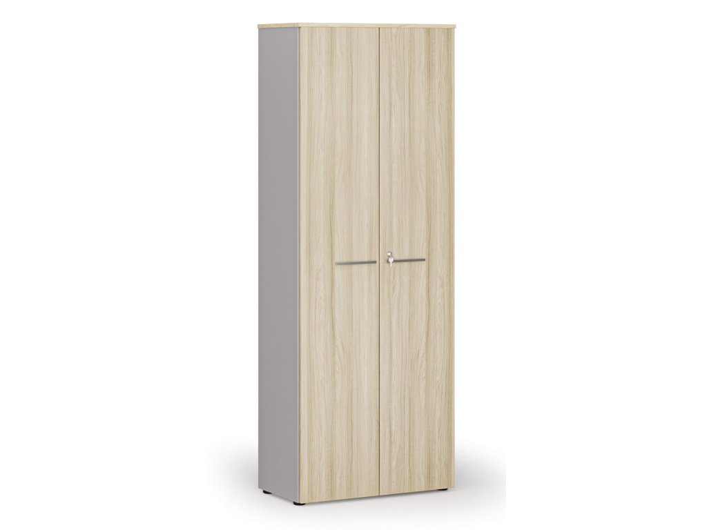 Kancelářská skříň s dveřmi PRIMO GRAY, 800 x 420 x 2128 mm, šedá/dub přírodní