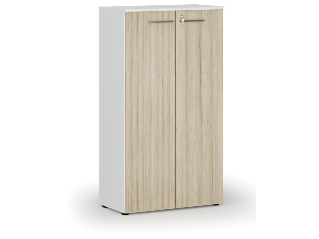 Kancelářská skříň s dveřmi PRIMO WHITE, 800 x 420 x 1434 mm, bílá/dub přírodní