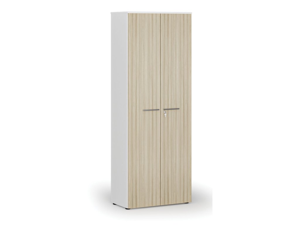 Kancelářská skříň s dveřmi PRIMO WHITE, 800 x 420 x 2128 mm, bílá/dub přírodní