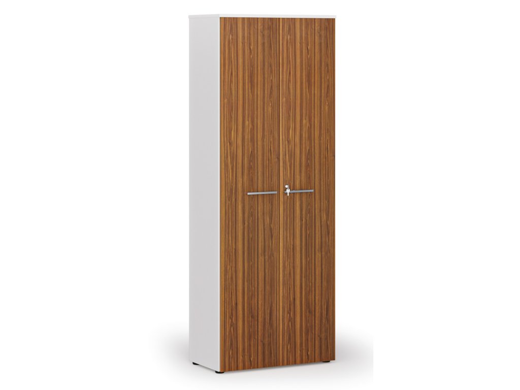 Kancelářská skříň s dveřmi PRIMO WHITE, 800 x 420 x 2128 mm, bílá/ořech