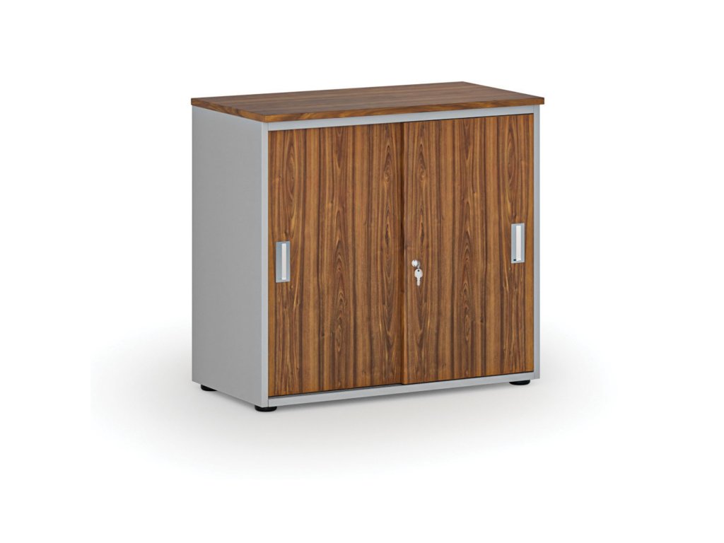 Kancelářská skříň se zasouvacími dveřmi PRIMO GRAY, 800 x 420 x 740 mm, šedá/ořech