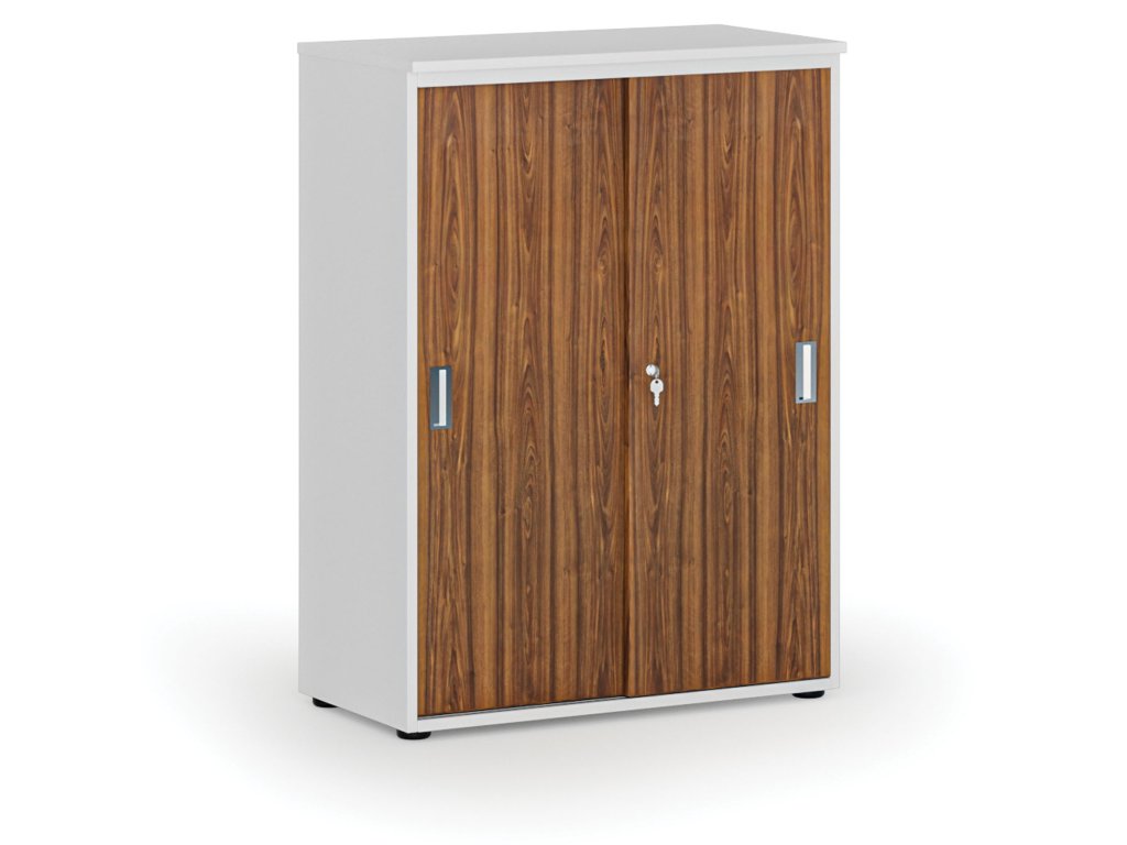Kancelářská skříň se zasouvacími dveřmi PRIMO WHITE, 800 x 420 x 1087 mm, bílá/ořech
