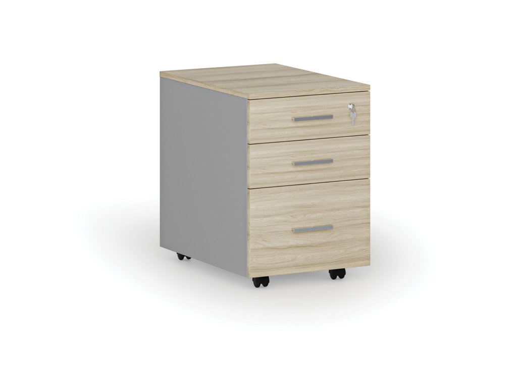 Kancelářský mobilní kontejner na závěsné složky PRIMO GRAY, 3 zásuvky, šedá/dub přírodní