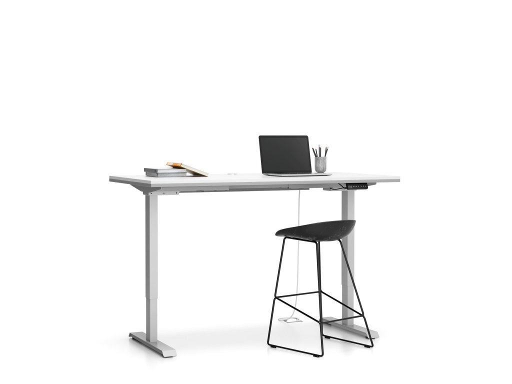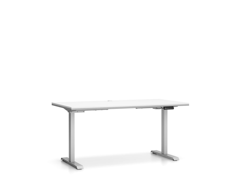 Výškově nastavitelný stůl SINGLE LAYERS, 160x80 cm, 2 motory, bílá/šedá