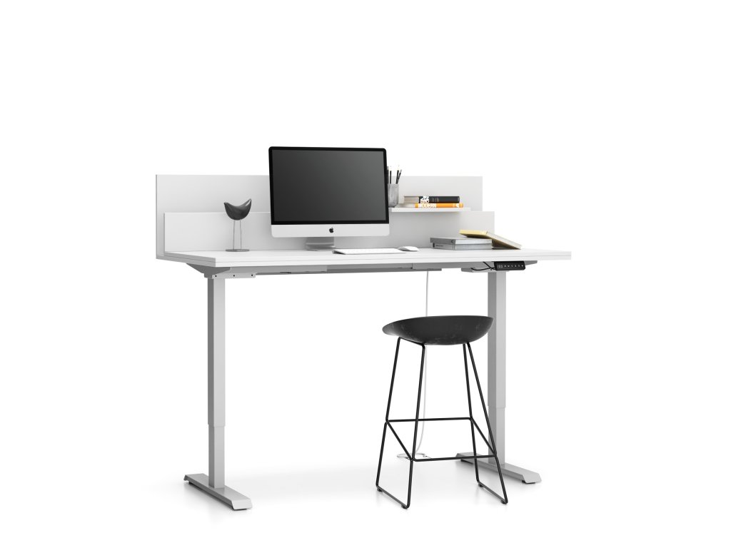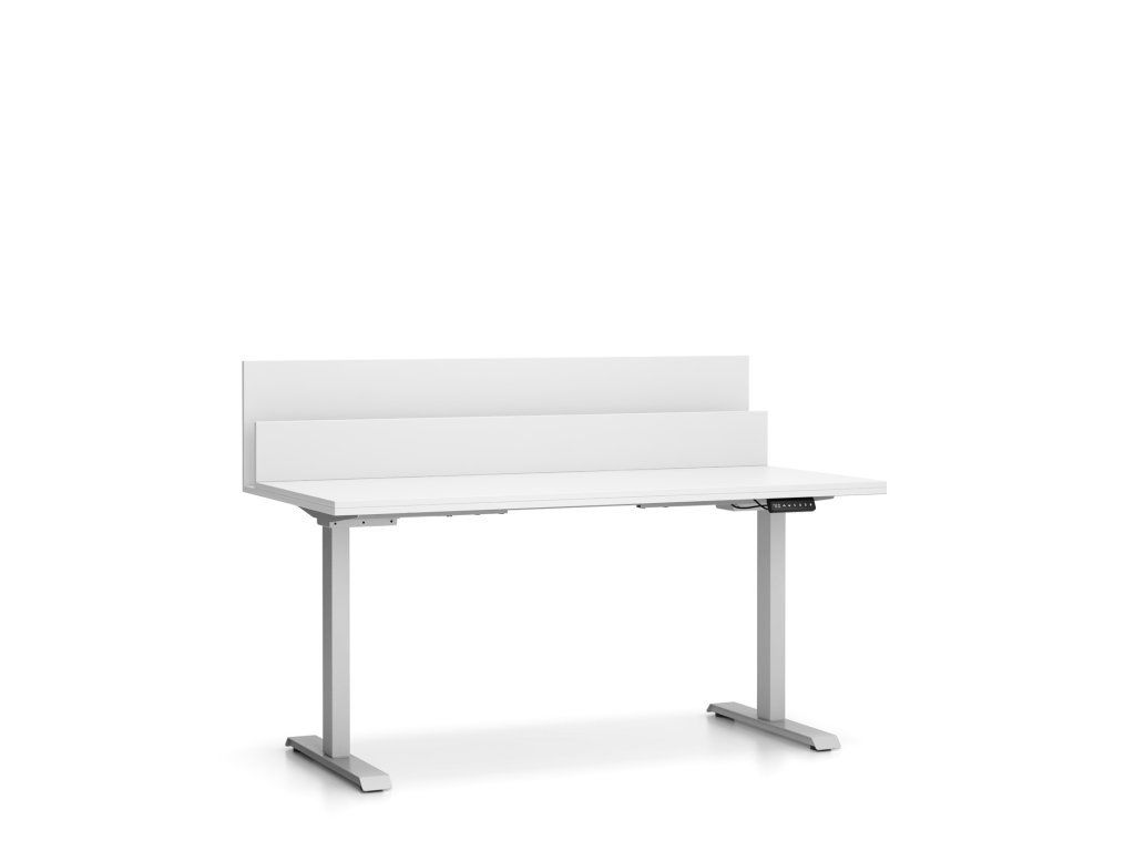 Výškově nastavitelný stůl SINGLE LAYERS, 160x80 cm, 2 motory, s přepážkami, bílá